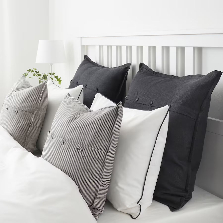 KRISTIANNE Cushion cover, white/dark grey striped, 50x50 cm